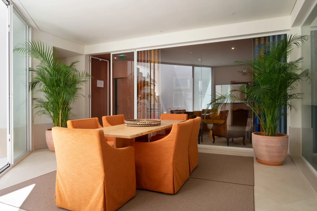 Desfrute de conforto total, climatização, WiFi grátis, cozinha totalmente equipada, algumas unidades com varanda ou terraço com vista para a piscina. Relaxe na nossa piscina exterior aberta todo o ano, recupere energias no ginásio, sauna e banho turco, ou simplesmente aprecie o jardim e as zonas de lazer.